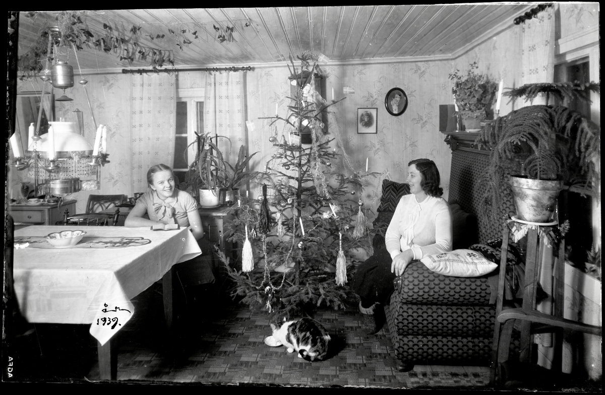 Mor och dotter vid julgran