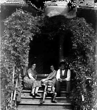 EN FAMILJ SITTER I TRAPPAN UTANFÖR ETT BOSTADSHUS.