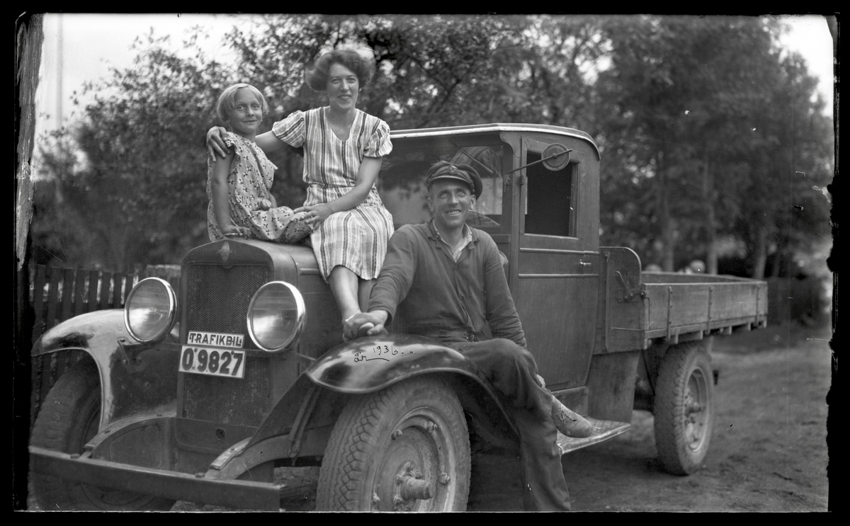 Familj sitter på lastbil