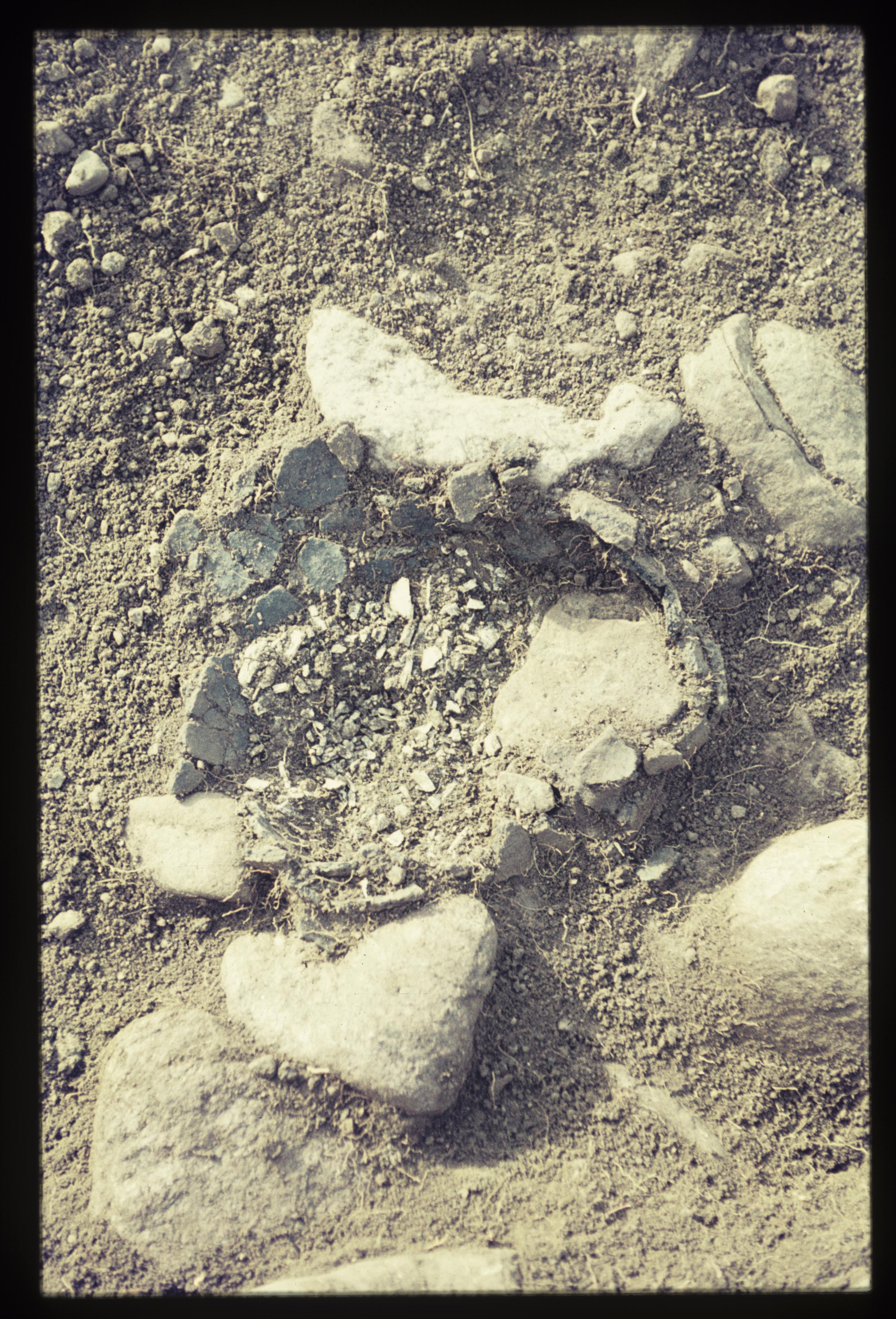 Häggum 17:2. Stensättning, undersökt och borttagen 1958. Sekundärgrav i urna.