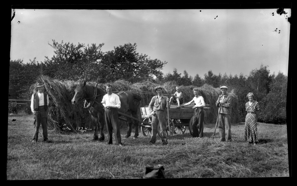 Arbetslag med skörd av hö