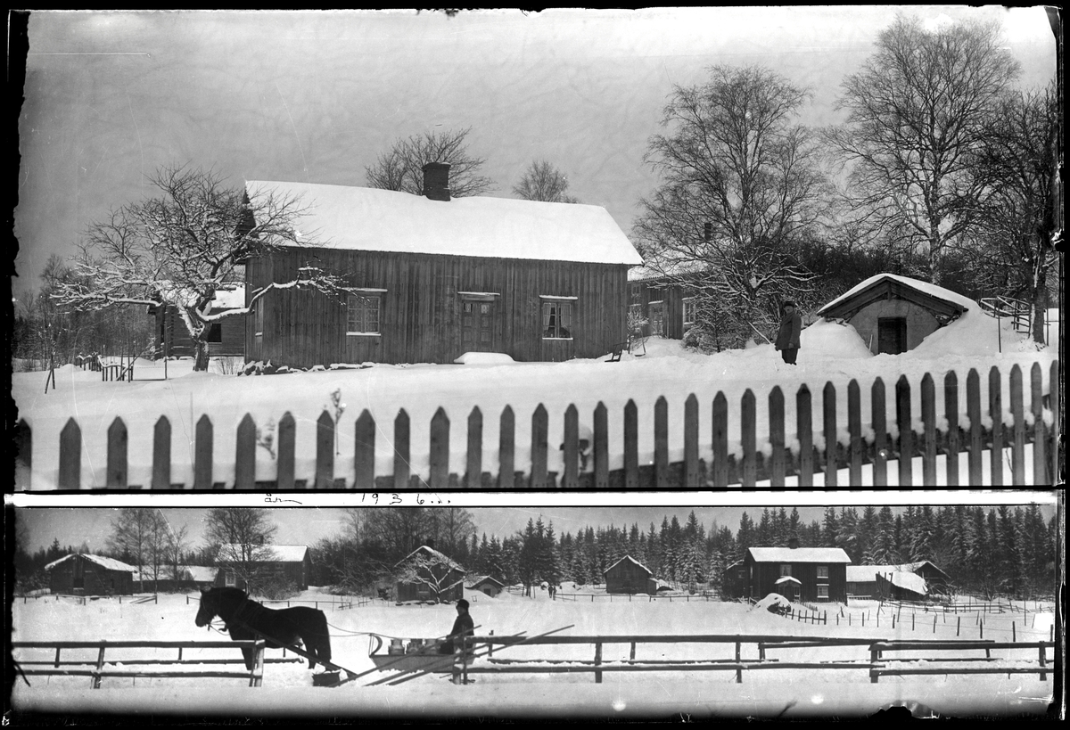 Släde framför gård