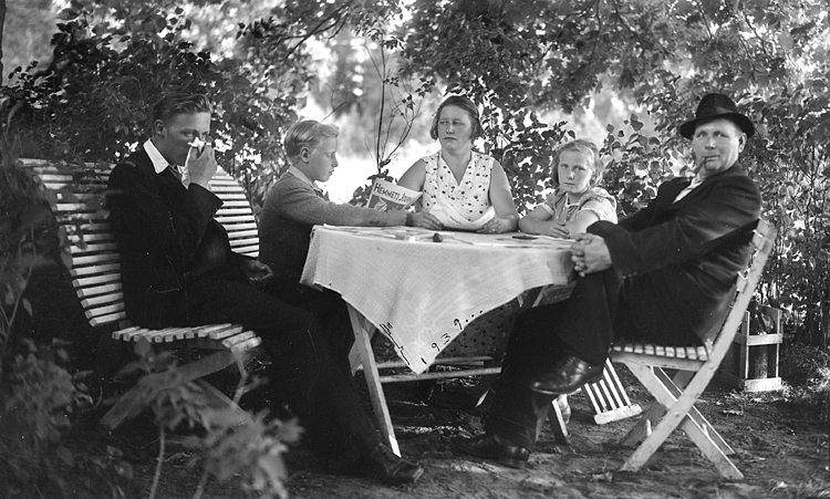 Familjen Gösta Engström, Röreholm, Rudskoga i trädgården.