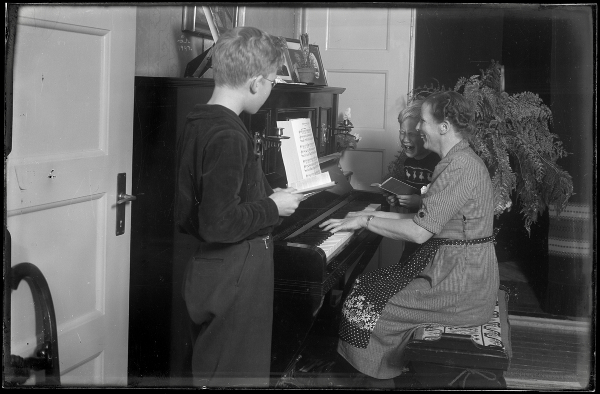 Stina Källgård har sånglektion med sönerna Olle och Åke