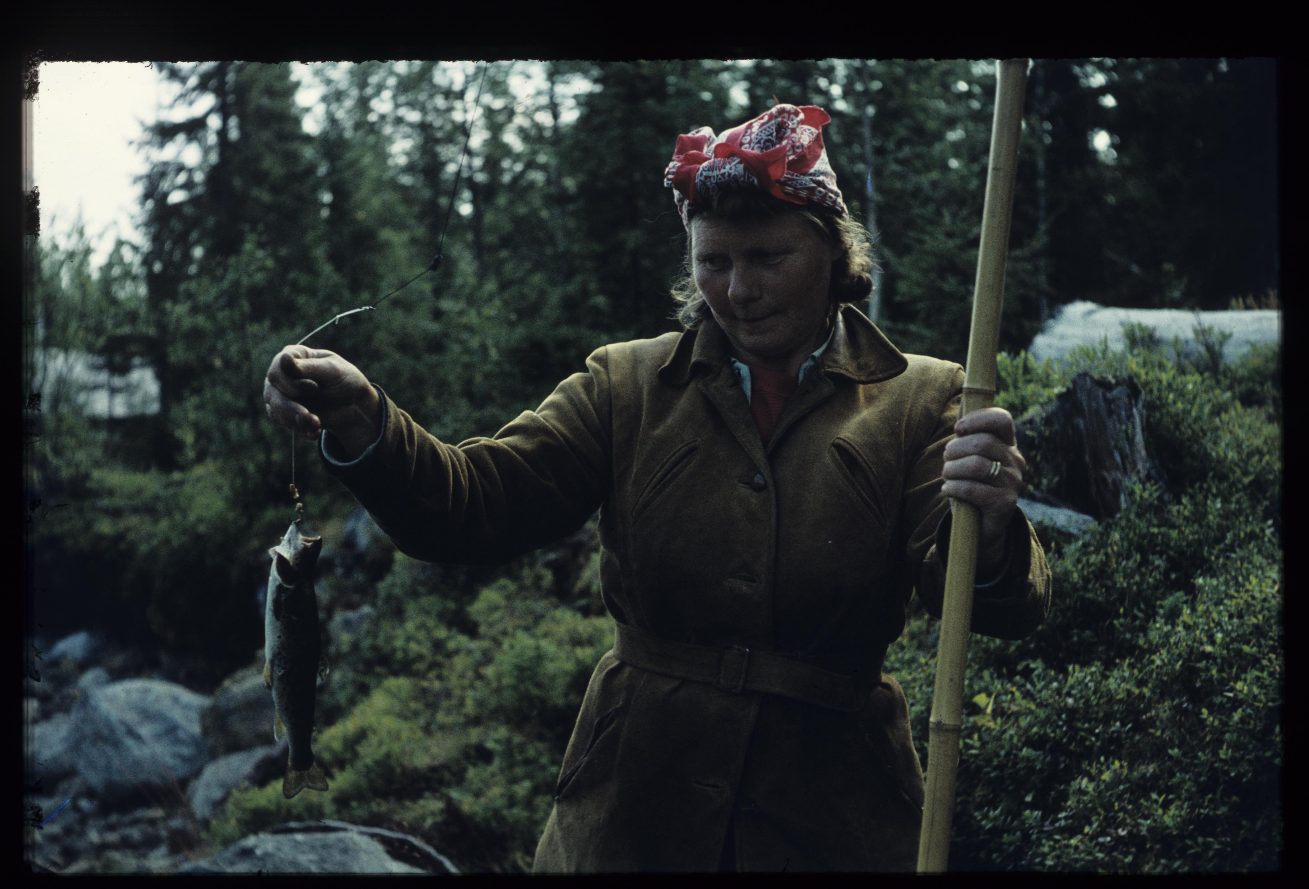 Sara Persson med fiskefångst från sjön.