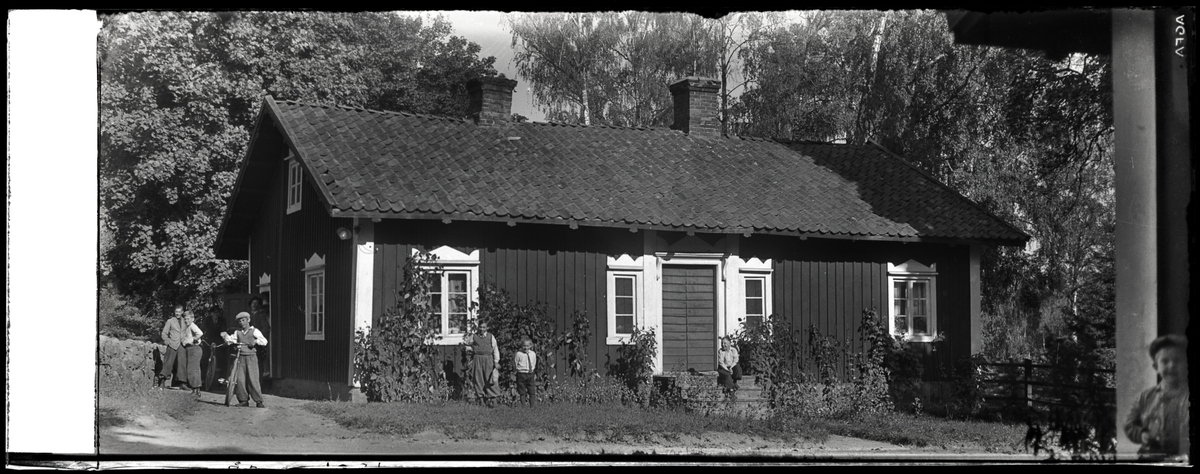 Familj framför hus