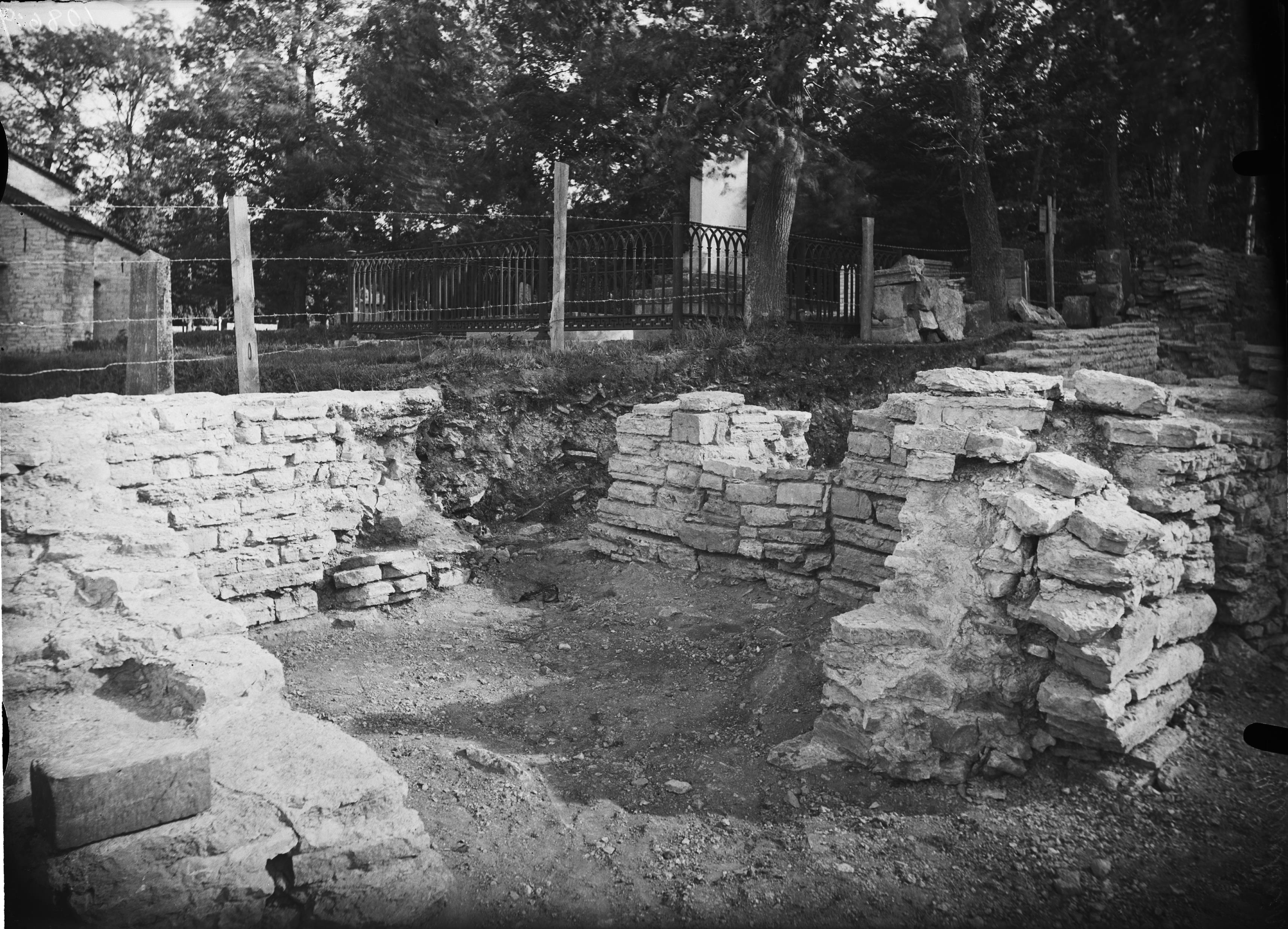 Abbotshuset. Det västligaste av de två små förrådsrummen. Dörren in till det östra förrådsrummet delvis igenmurad. Från sydväst.