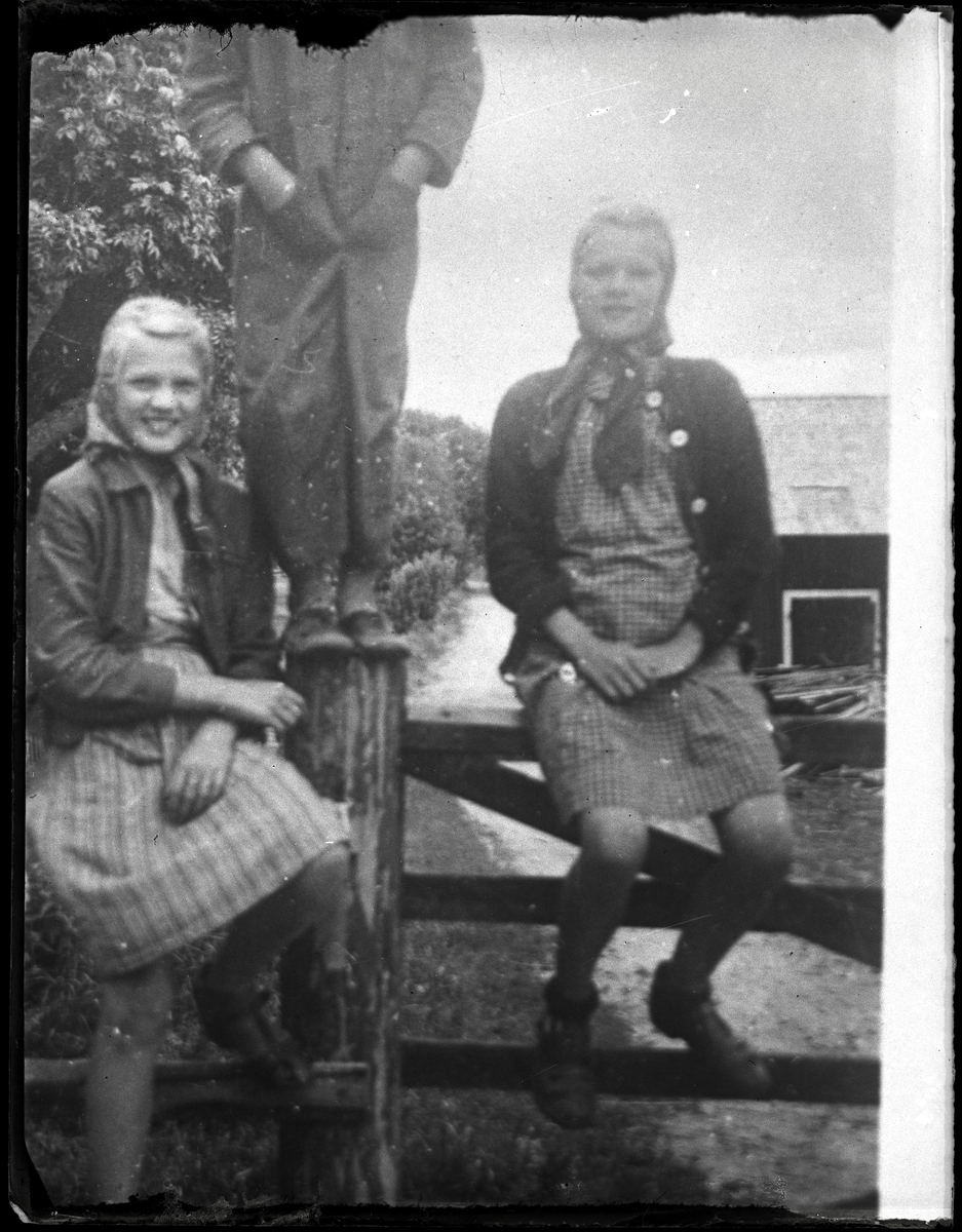 Tre ungdomar på en grind