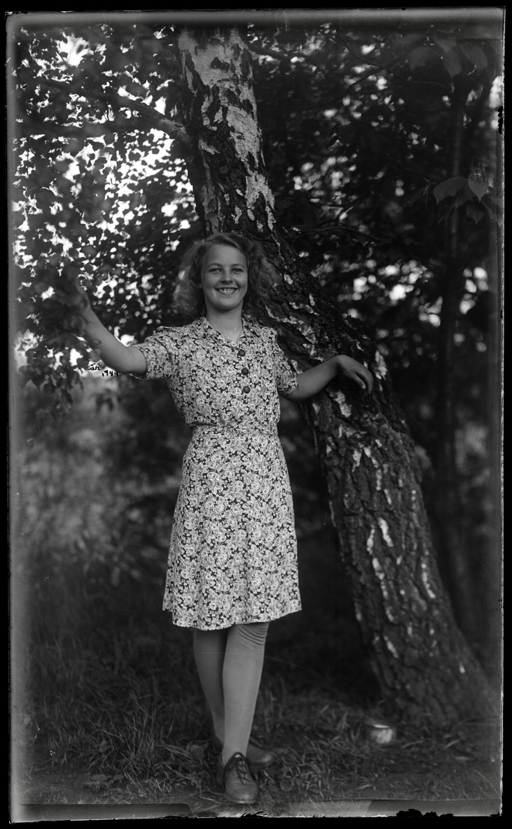Ung kvinna vid björk
