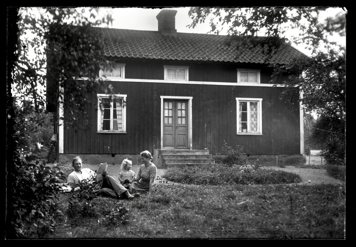 Familj framför hus