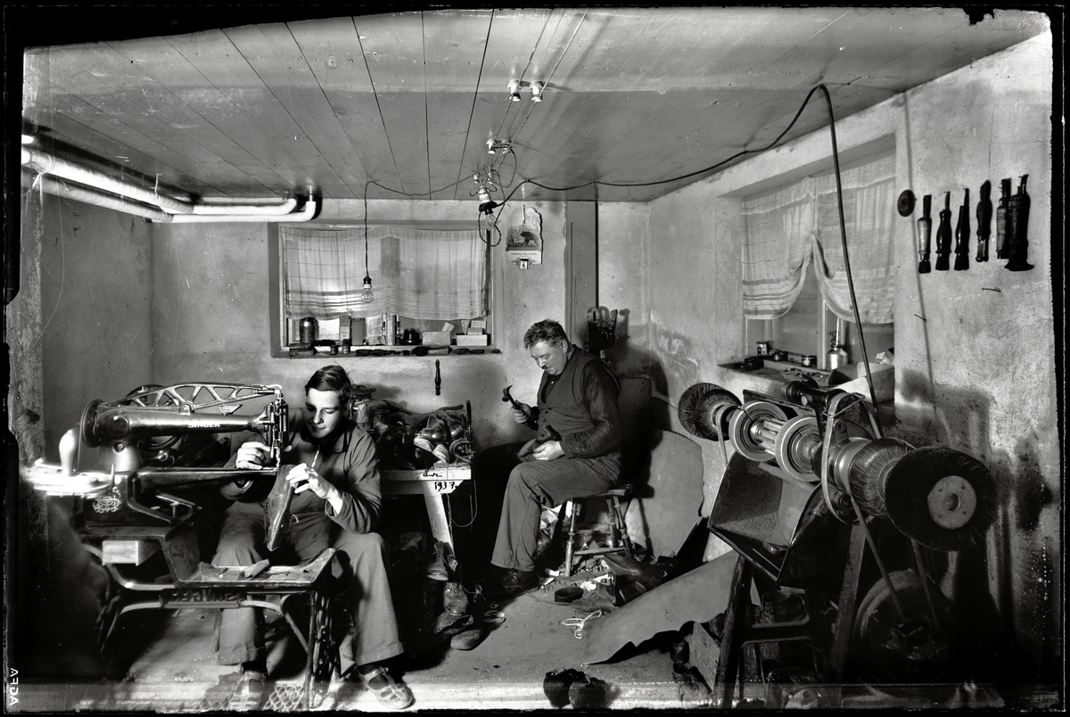 Interiör från en skomakarverkstad