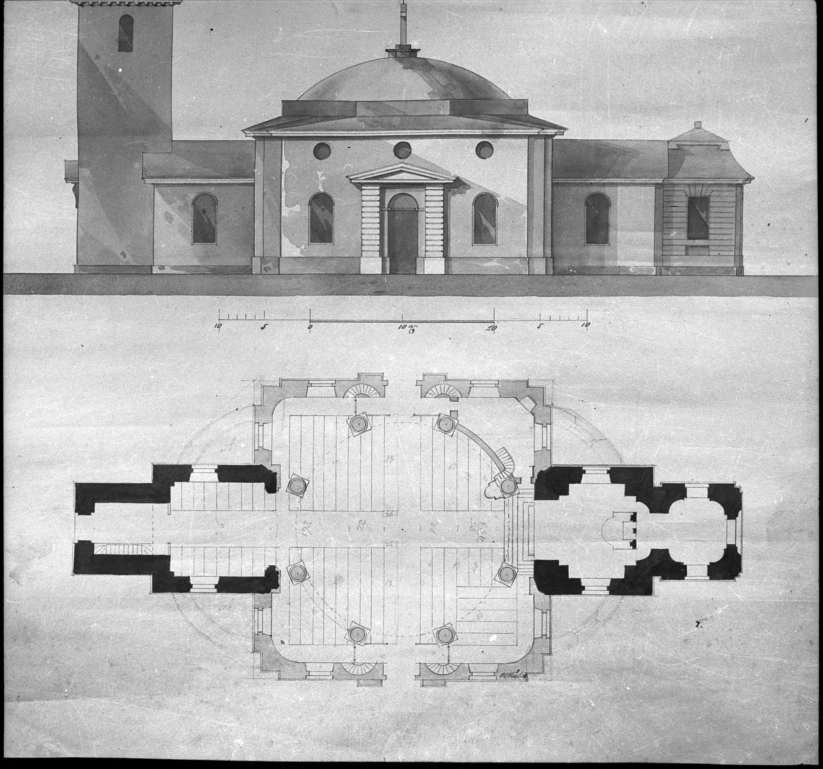 Förslag ny kyrka, foto av ritning.