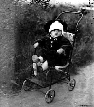 ETT LITET BARN SOM SITTER I EN KÄRRA.