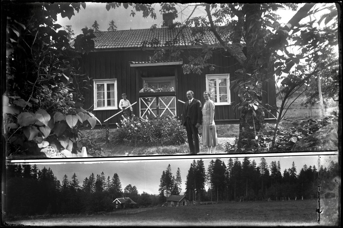 Titel: Familj framför bostadshus