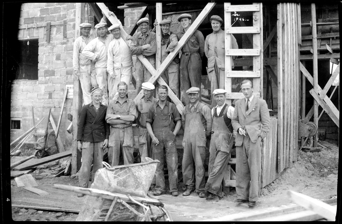 Arbetslag framför blivande läkarmottagningen i Tidan