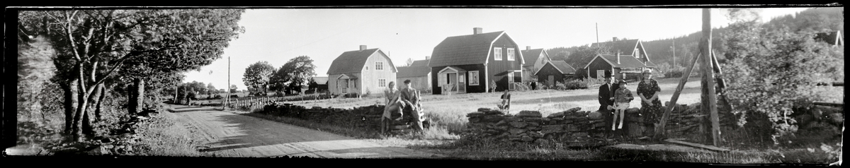 Familj samlad vid stenmur