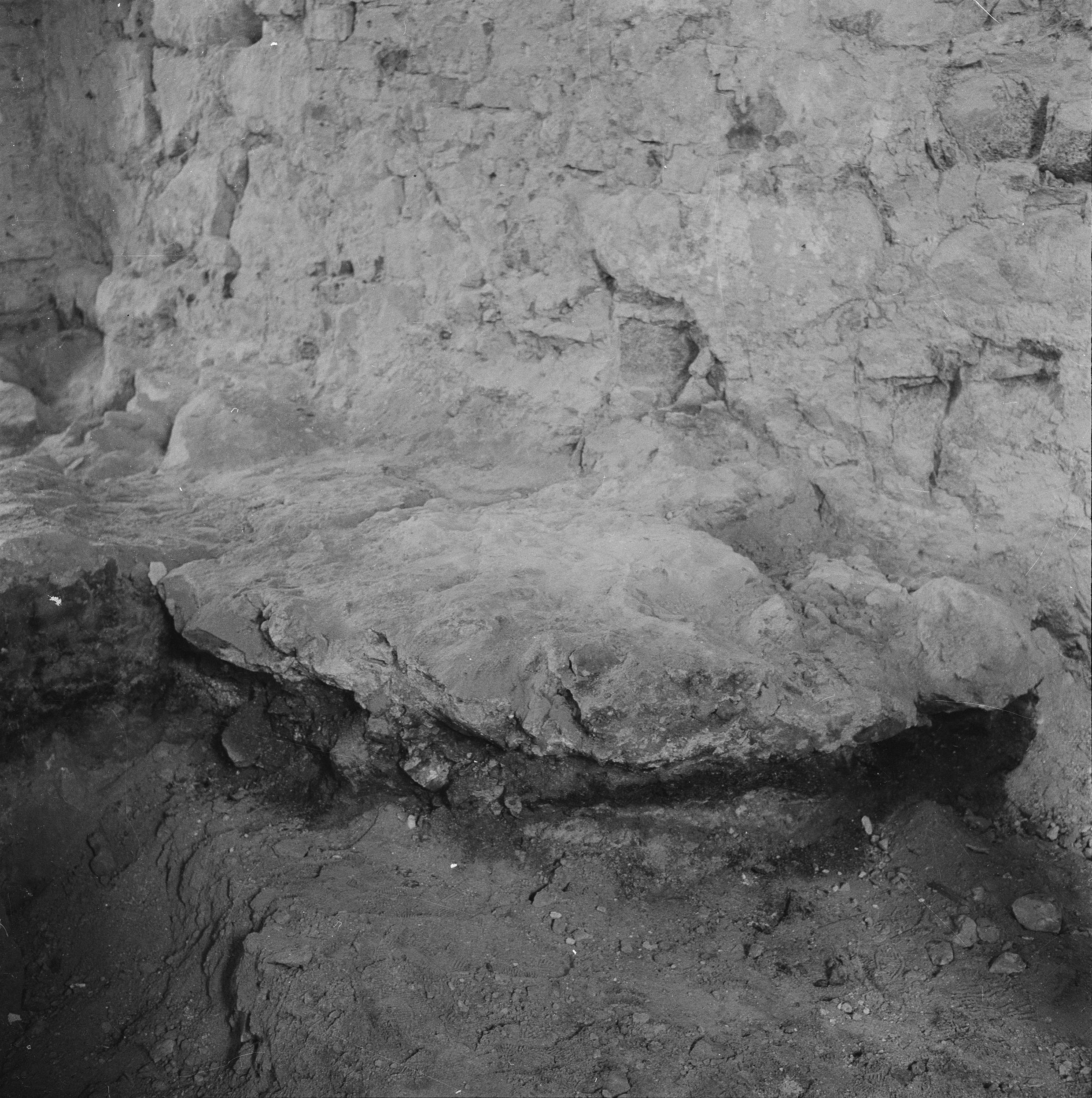 Kyrkan under ombyggnad. Korets stödjepelare mot sydöst.
