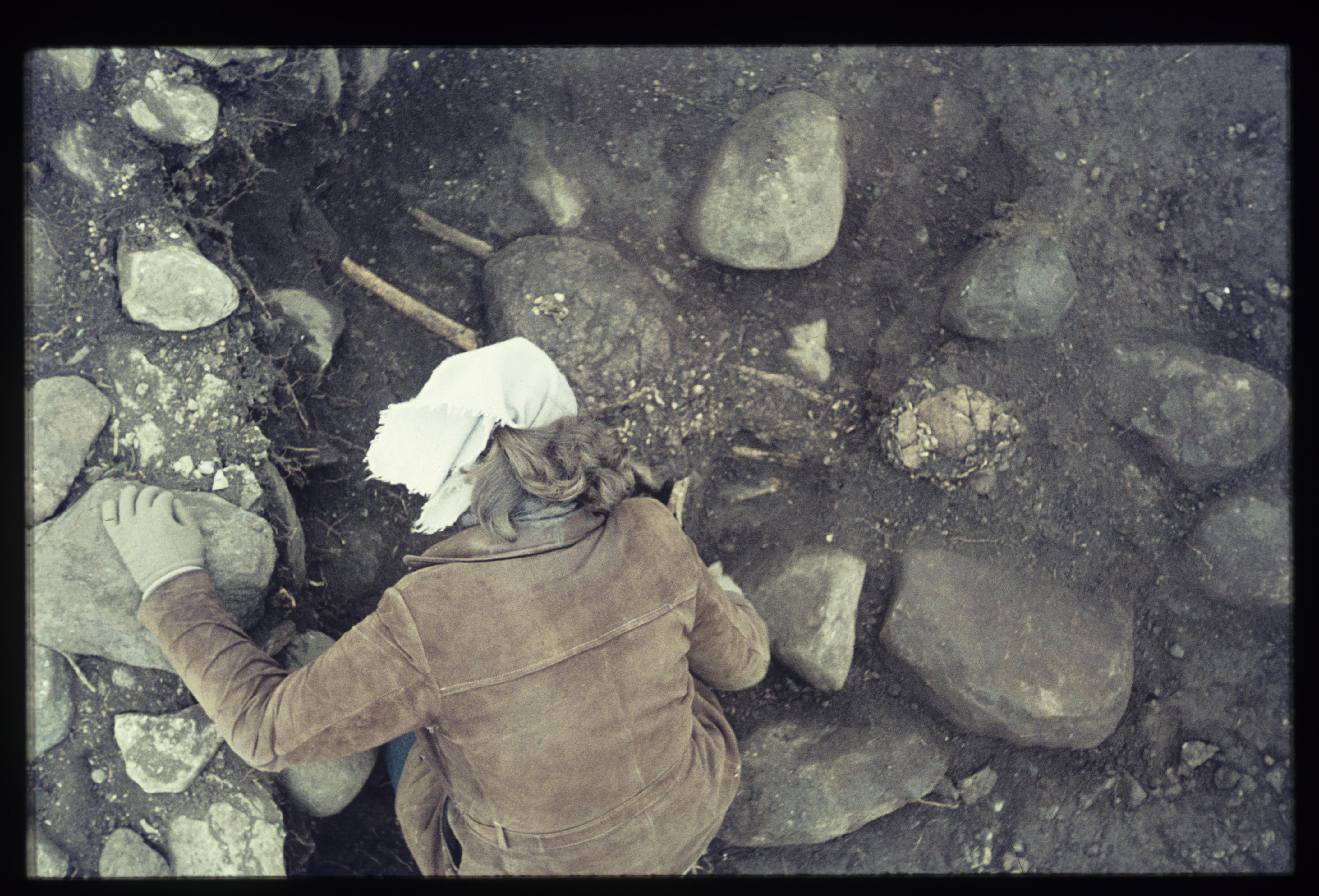 Häggum 21:1. Hög, undersökt och borttagen 1958. "Övergrabben" under utgrävning.