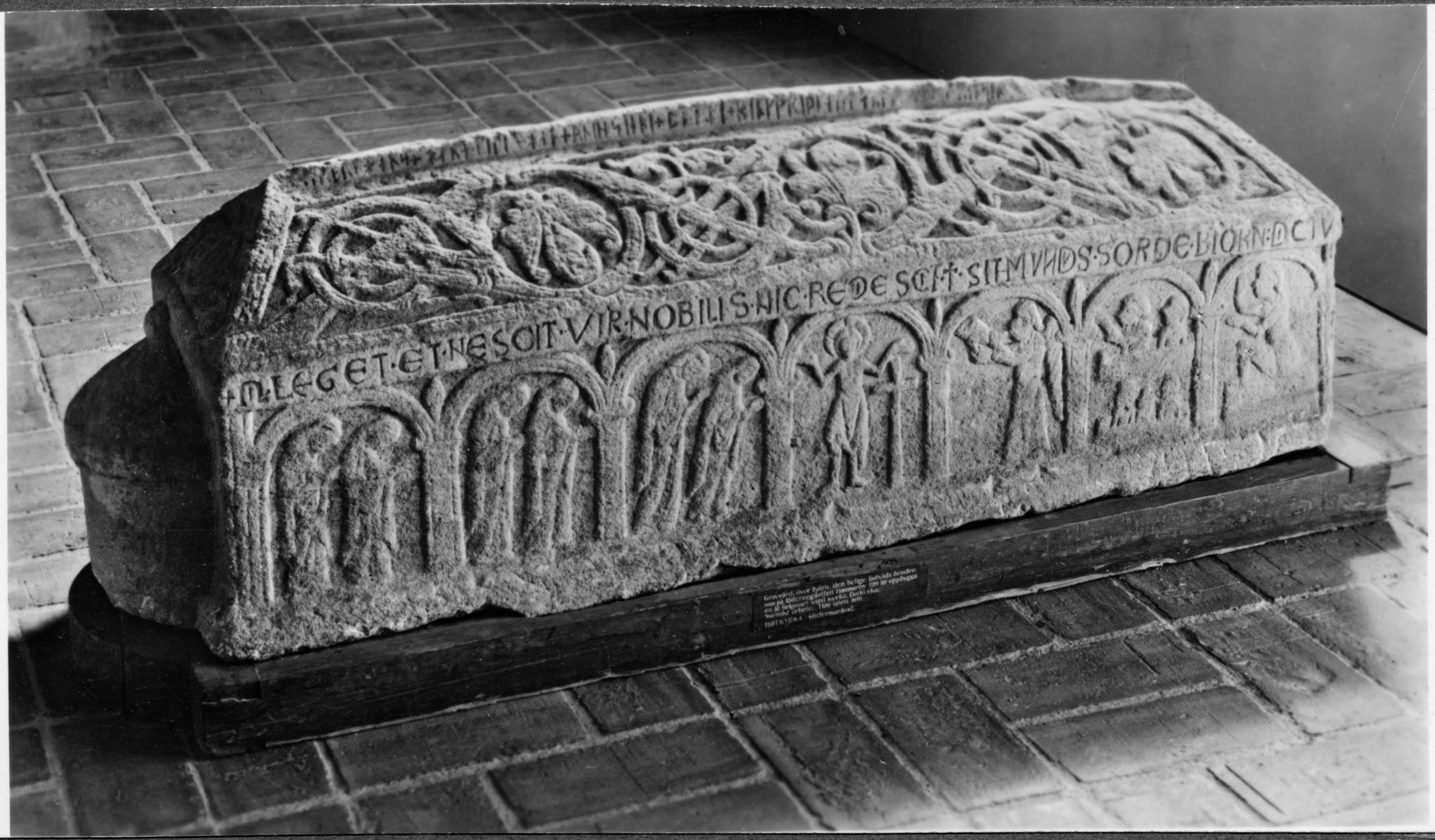 Botkyrkamonumentet. Gravvård av sandsten med grundform av en kyrka. 1100-talets första hälft.