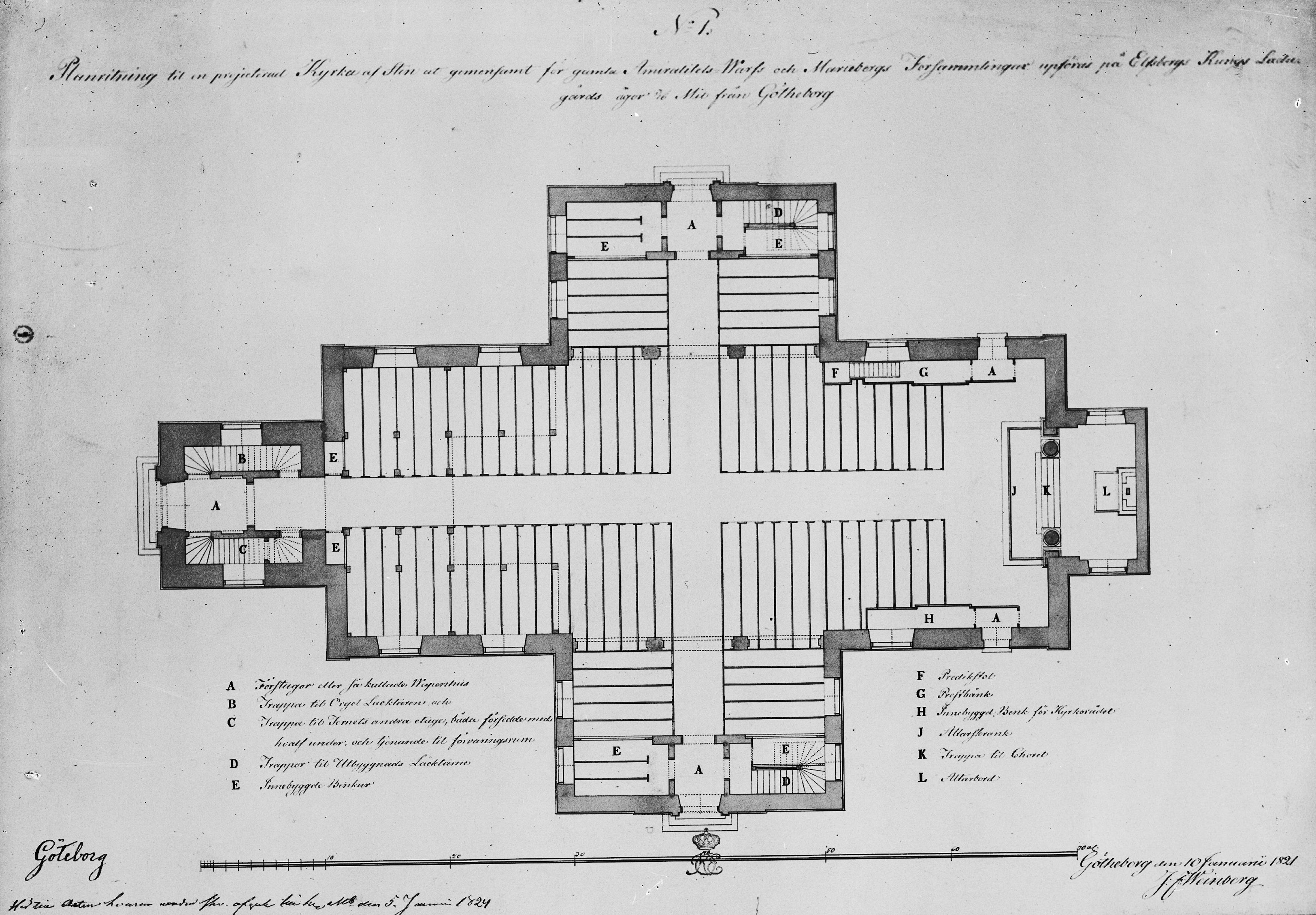 Förslag till kyrka av J.F Weinberg 1821-1824, ritning, avfotograferad.