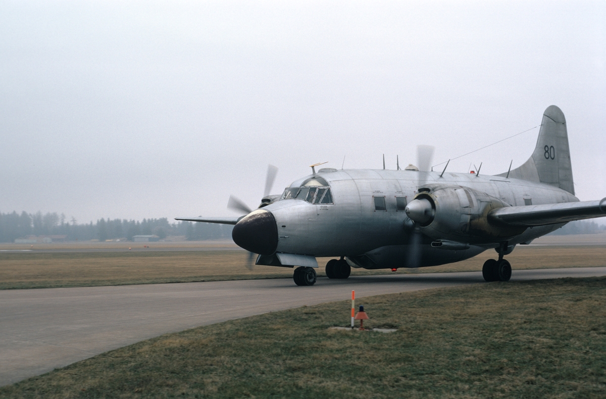Flygplan TP 82 Vickers Varsity märkt nummer 80 tillhörande F 8 Barkarby landar på F 3 Malmens flygfält, våren 1973.