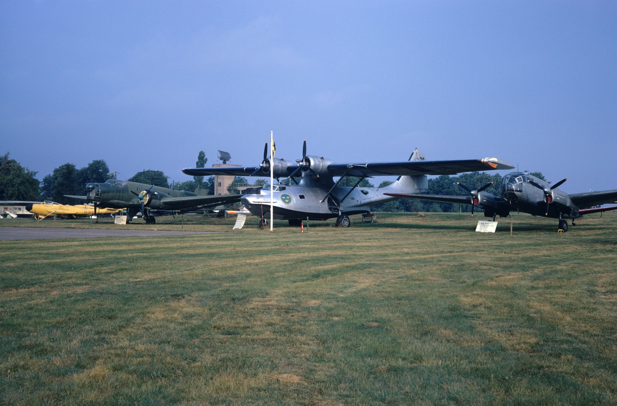 Flygutställning vid flygdagen på Malmen, 10 september 1972. Uppställda flygplan från vänster: De Havilland Venom D.112 civilregistrerat SE-DCD, B 3, TP 47 samt Siebel Si 204 med civilregistrering SE-KAE.