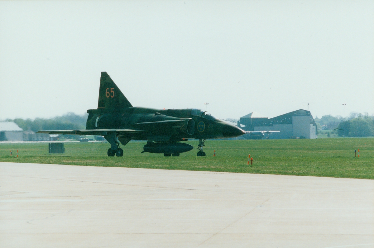 Uppställt flygplan AJ 37 märkt nummer från F 7 Såtenäs.