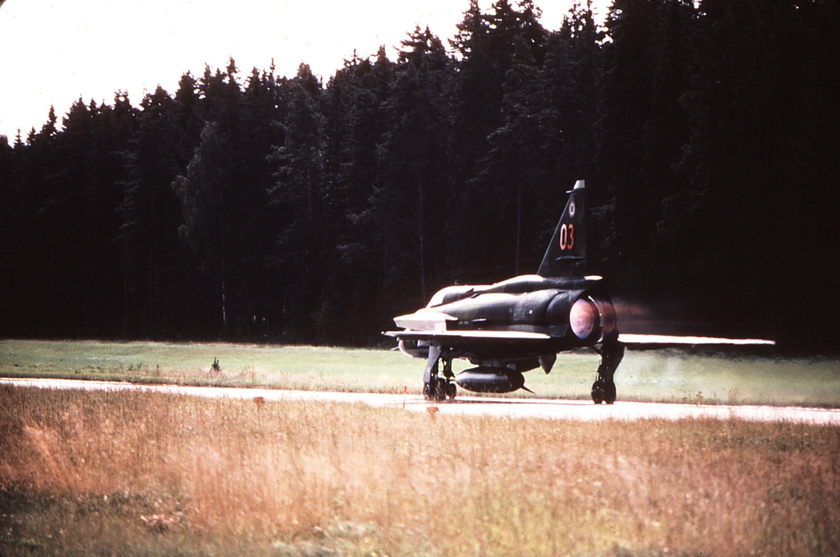 Flygplan 37 Viggen startar vid övning i Björkvik.