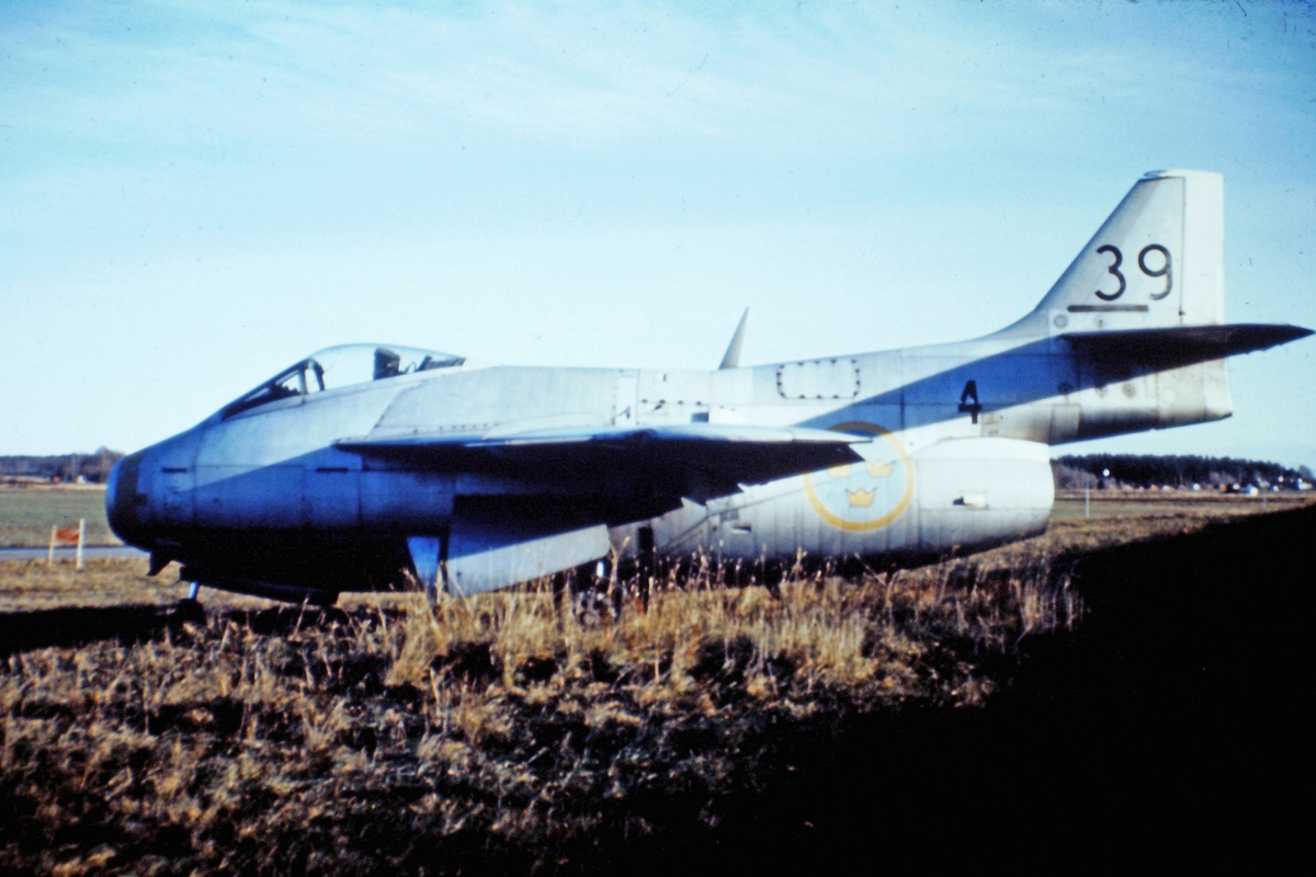 Flygplan J 29 492 som målbogserarflygplan kod 4-39 år 1976. Vy från sidan.