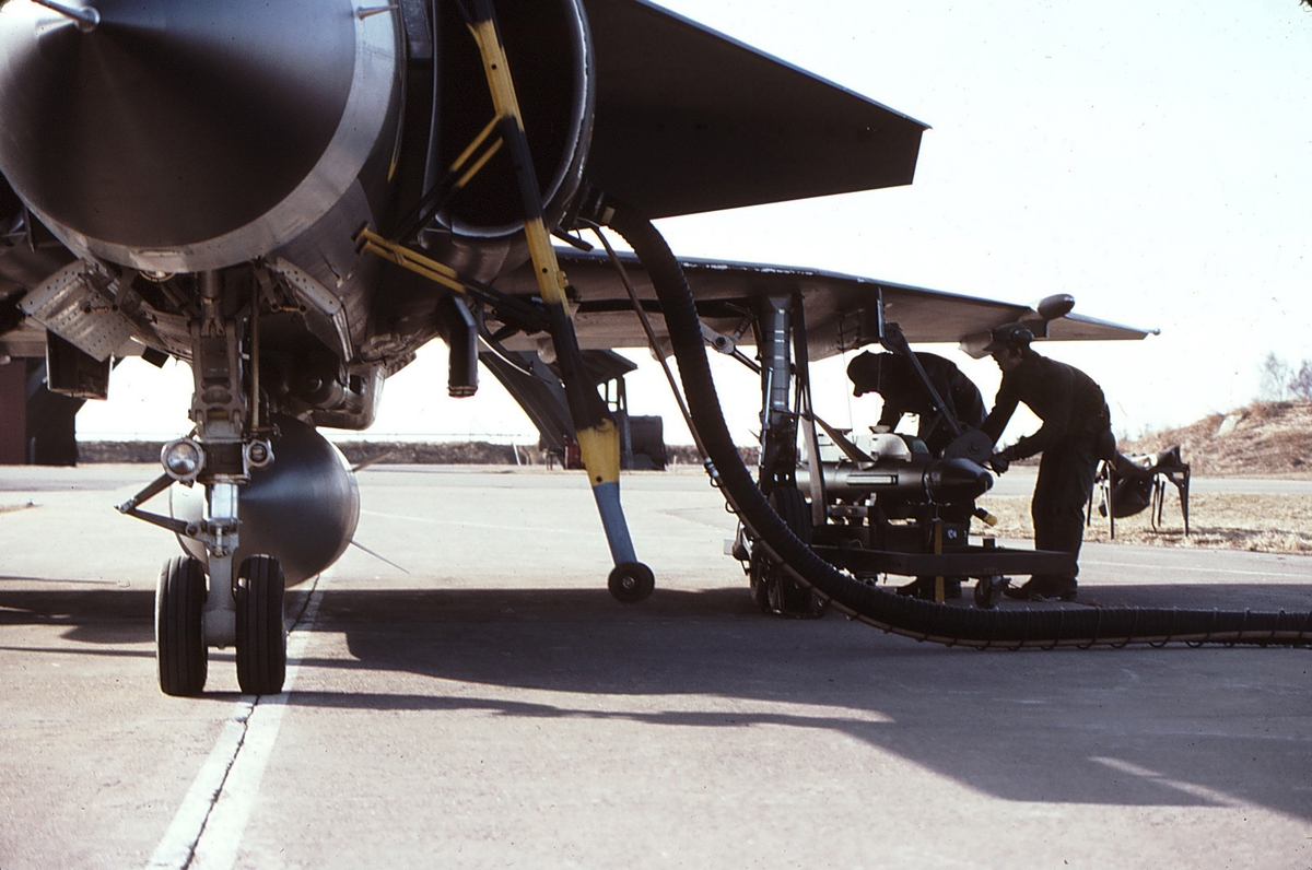 Klargöring av flygplan JA 37 Viggen inför start vid F 13 Bråvalla.