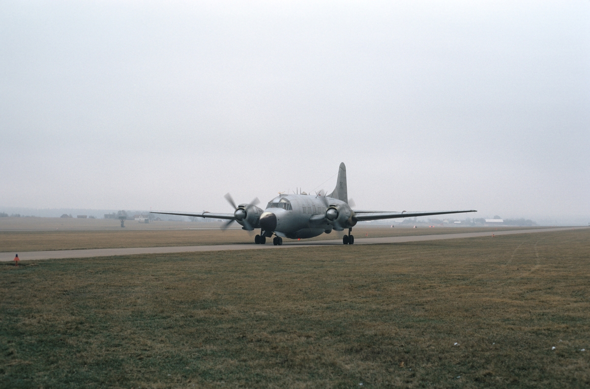 Flygplan TP 82 Vickers Varsity märkt nummer 80 tillhörande F 8 Barkarby landar på F 3 Malmens flygfält, våren 1973.