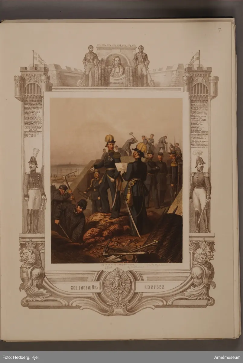 Plansch med uniform för Ingenjörkåren. Plansch i färgtryck efter original av Julius Mankell 1864. Ingår i planschsamlingen Anteckningar rörande svenska regementers historia.