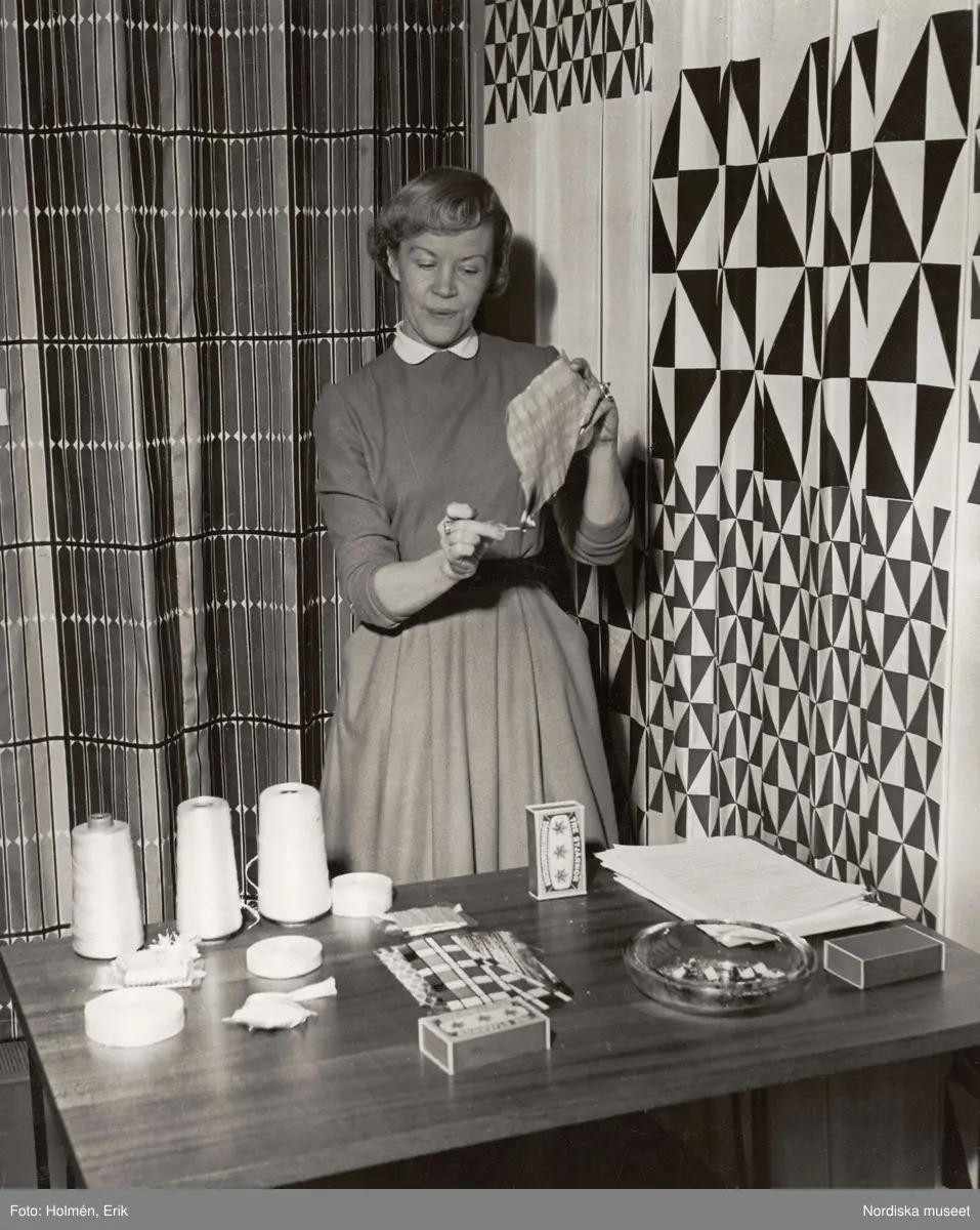 Astrid Sampe bränntestar glastyg på Nordiska Kompaniets textilkammare i samarbete med Mölnlycke. Textil av Astrid Sampe.