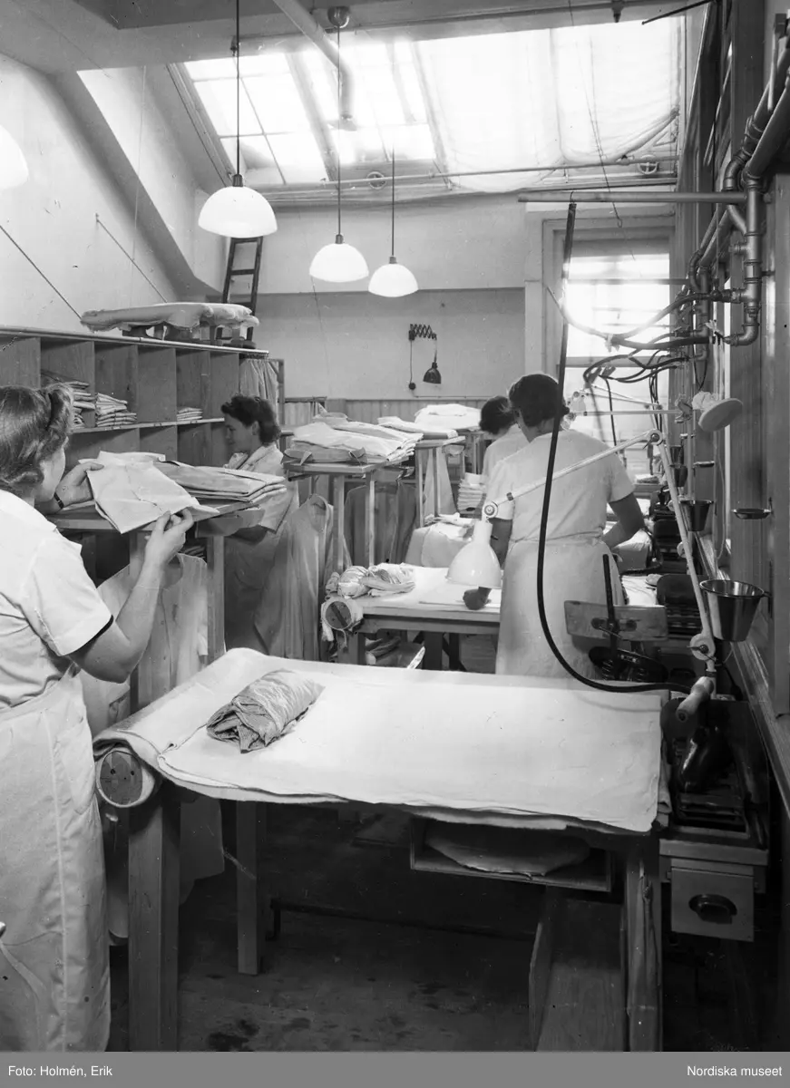Interiör från Nordiska Kompaniet, strykavdelning.