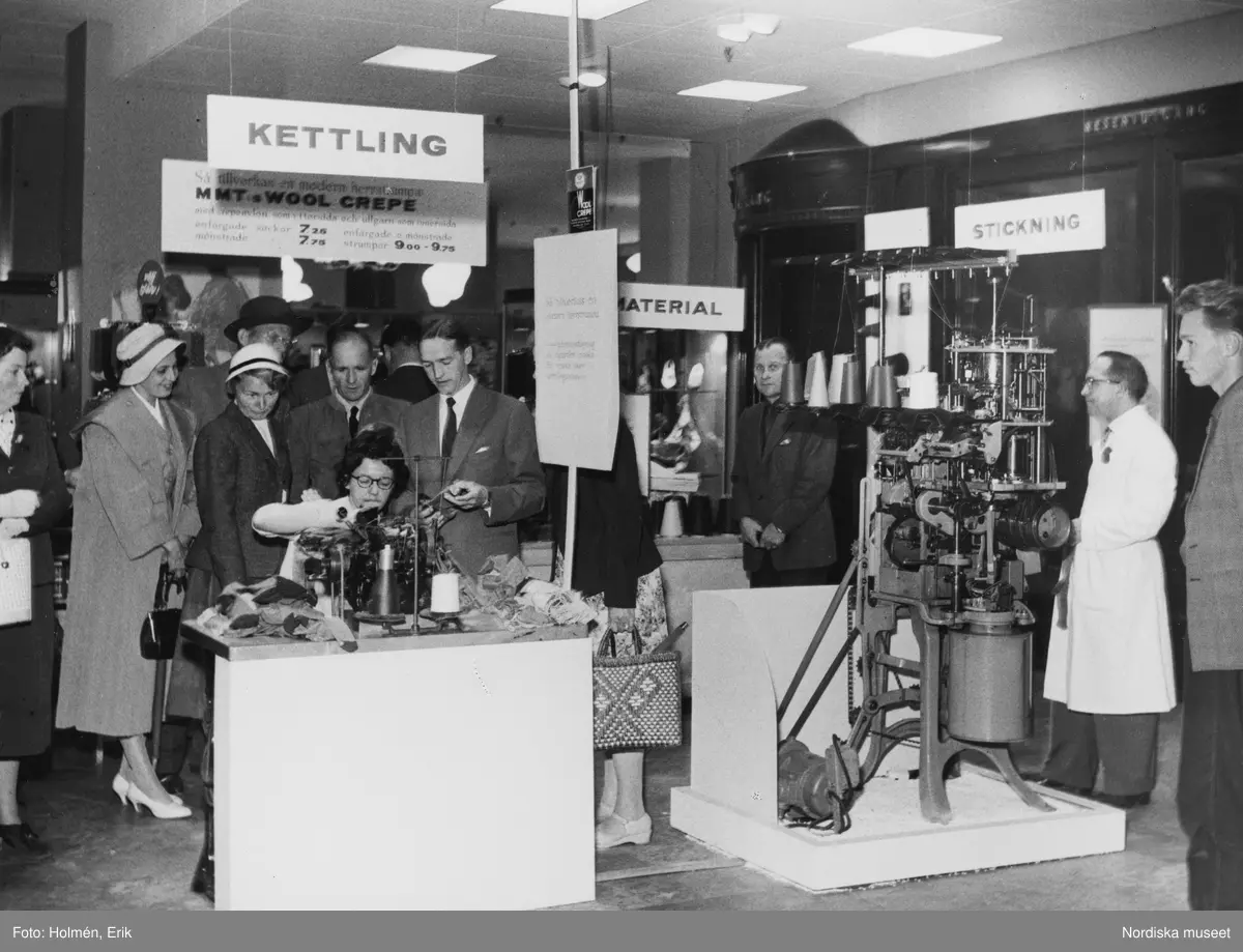 Förevisning på Nordiska Kompaniet. "Så tillverkas en modern herrstrumpa."