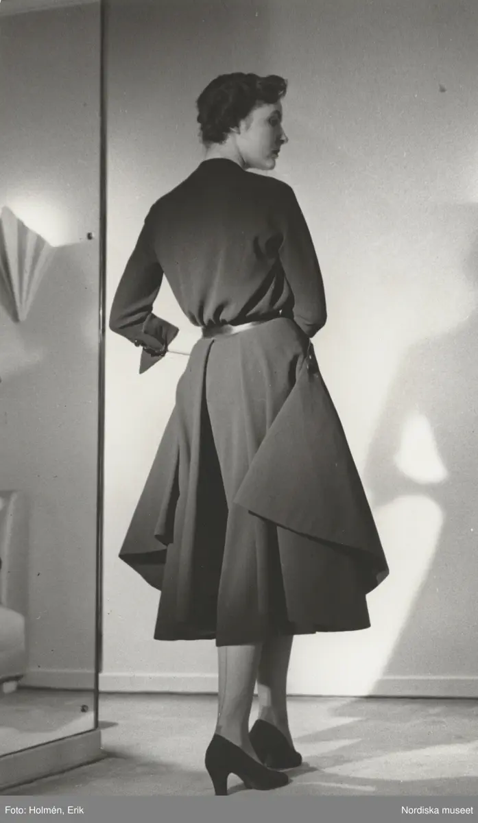 Modell i mörk klänning med skärp och pumps. Från Dior.