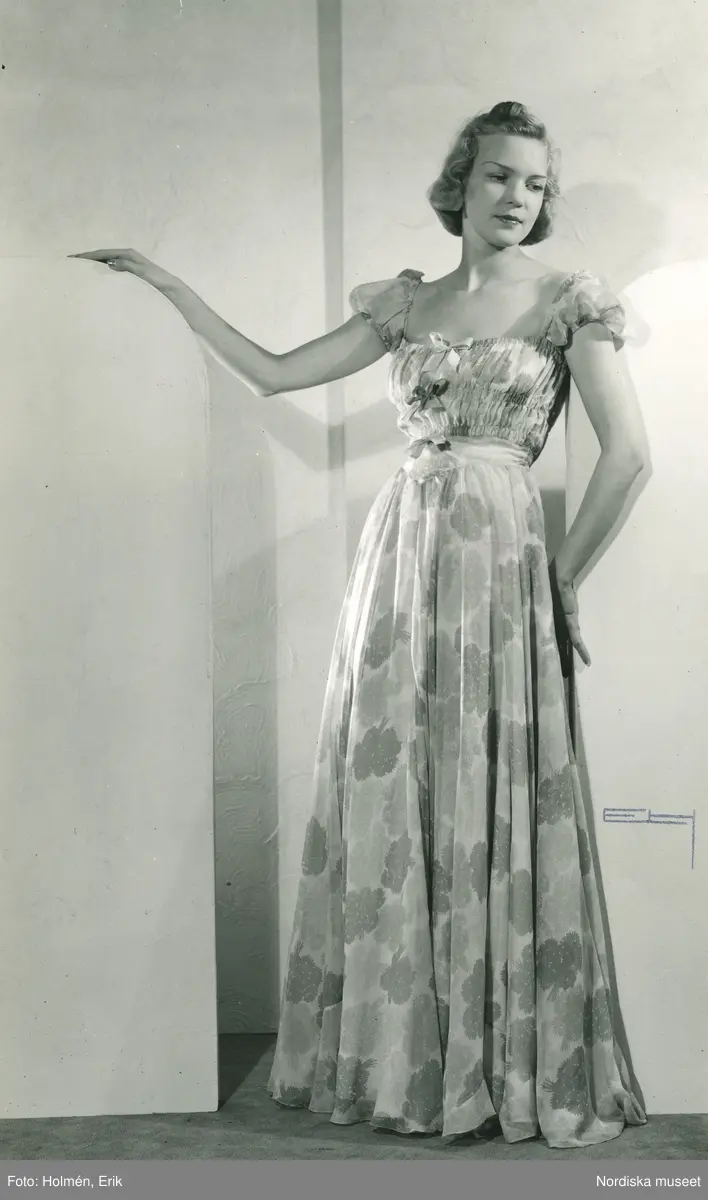 Helporträtt av kvinna i aftonklänning av Joe Strassner, London.
