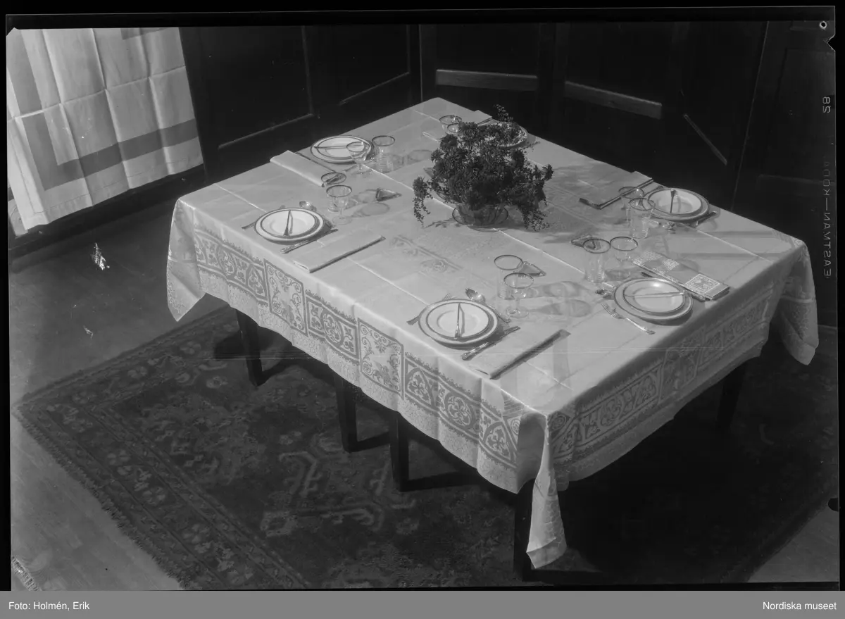 Interiörer och närbilder från utställning. Fotografens förteckning/ anteckning: Dukade bord