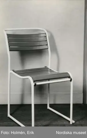 Stålrörsstol med sits och ryggstöd av träribbor. 1930-tal. Nordiska Kompaniet.