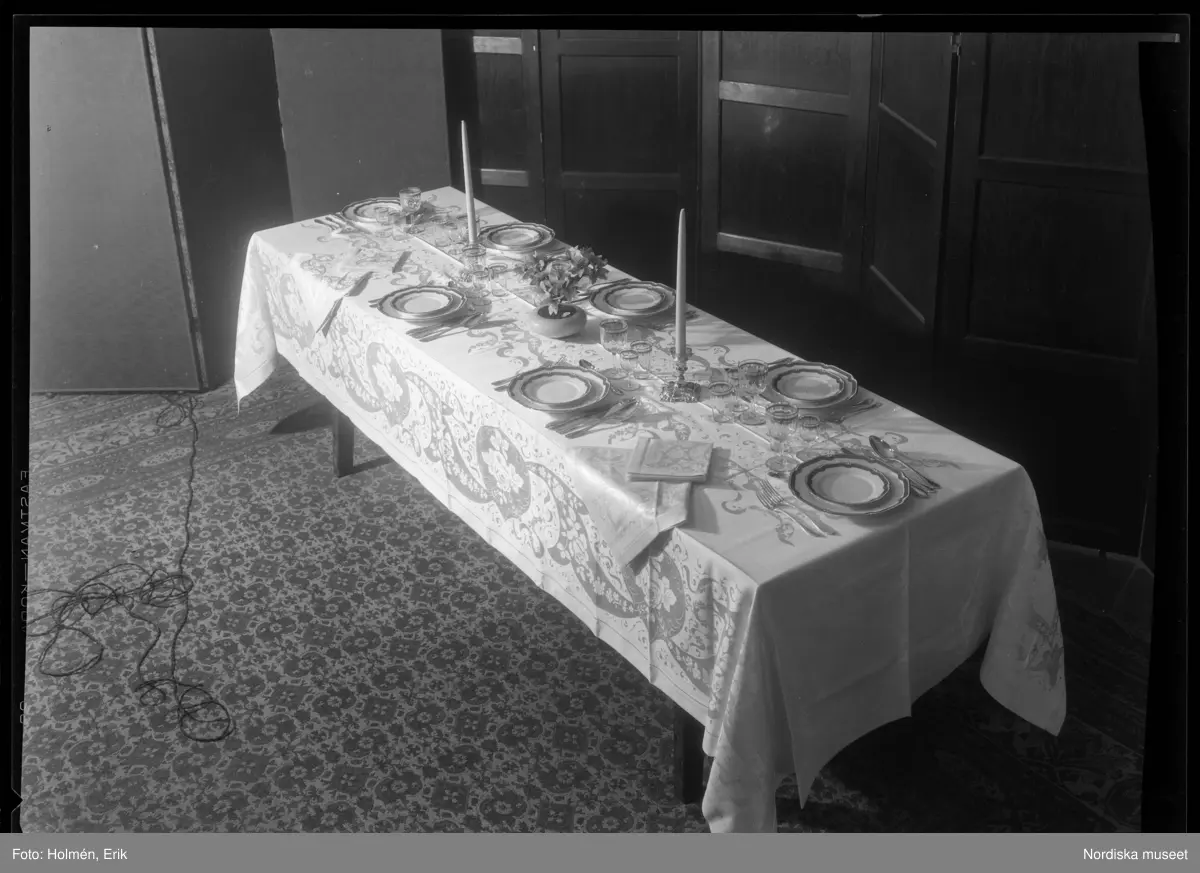Interiörer och närbilder från utställning. Fotografens förteckning/ anteckning: Dukade bord
