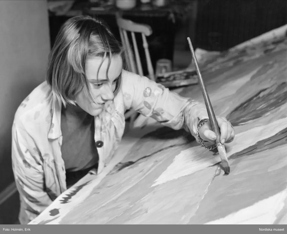Nordiska kompaniet. Barnens Värld i NK, oktober 1949. Flicka målar.