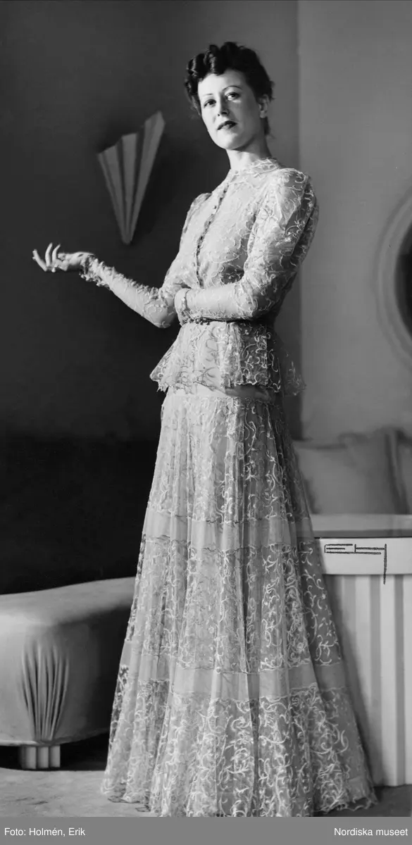 Modell visar en Aftonklänning. Nordiska Kompaniet.