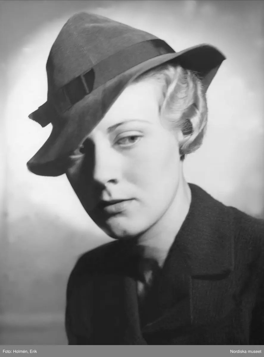 Damhatt med band och brätte över ögat. Nordiska Kompaniet.