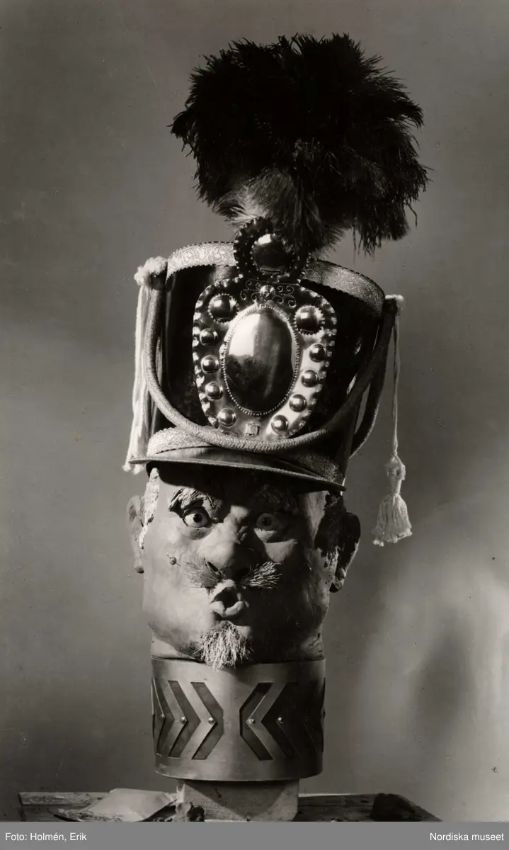 General Pim-Pim. Skulptur, byst, iförd militär huvudbonad med plym och tofs. På varuhuset Nordiska Kompaniet i Stockholm 1937.