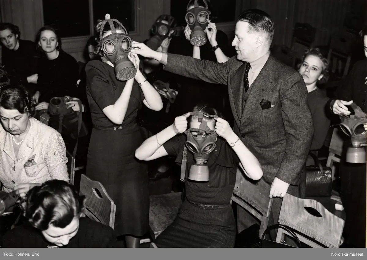 Utprovning av skyddsmasker på varuhuset NK, Nordiska Kompaniet.