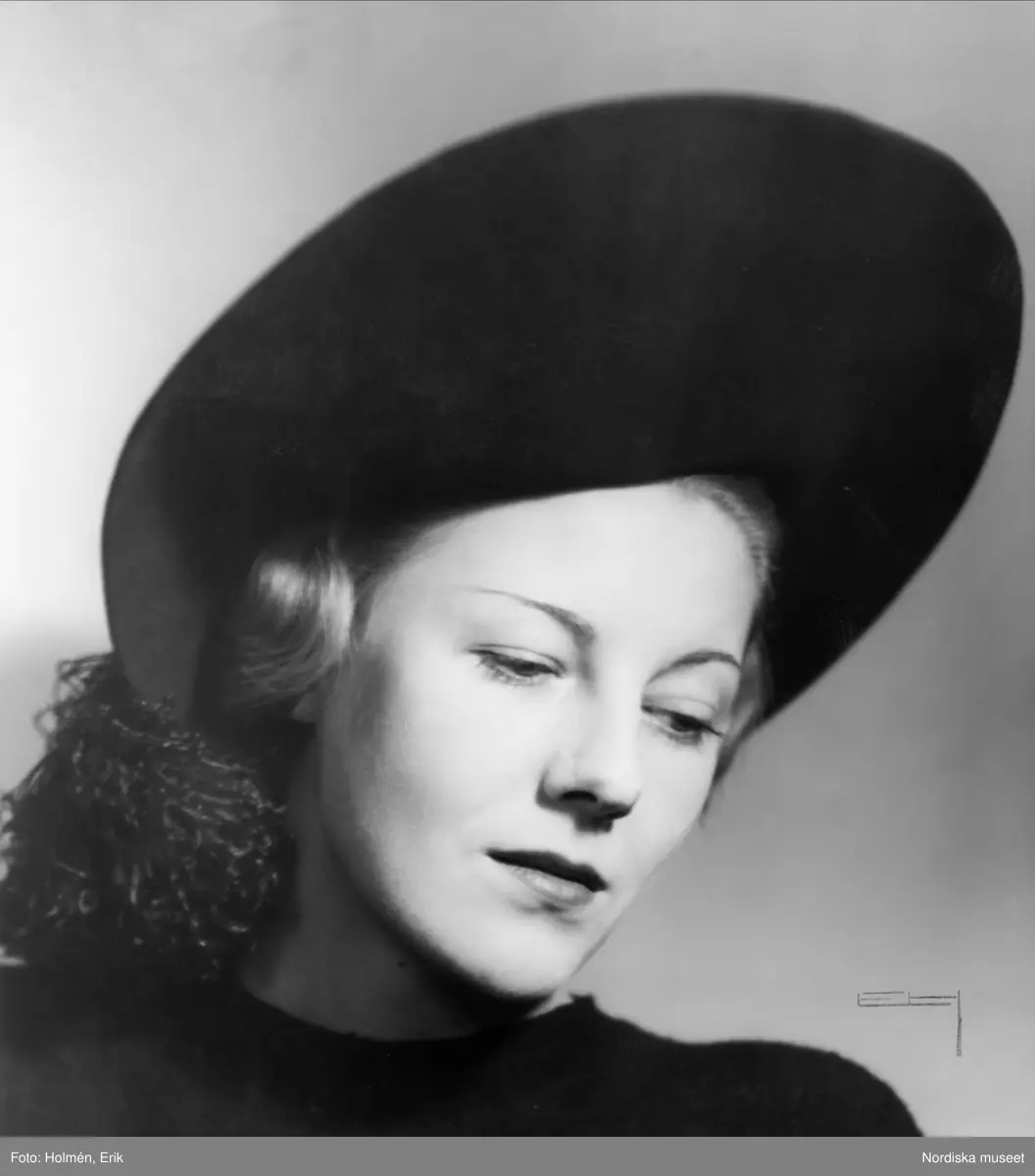 Damhatt Reboux i svart filt med svarta plymer. Nordiska Kompaniet.