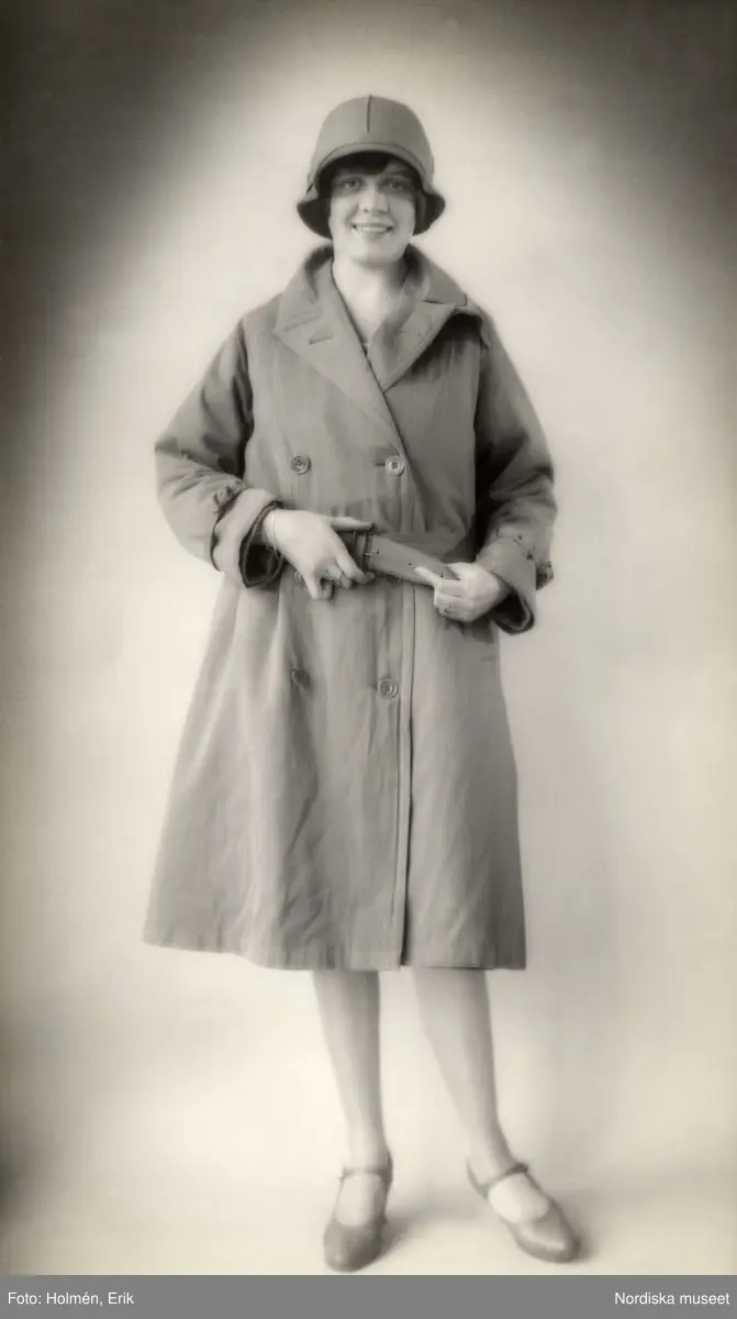 Modell poserar i en sportig kappa och hatt. Nordiska Kompaniet.