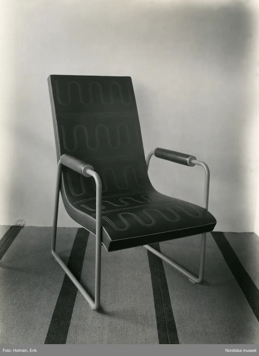 Stol med armstöd. Stålrör och skinn. Stockholmsutställningen 1930. Nordiska Kompaniet.