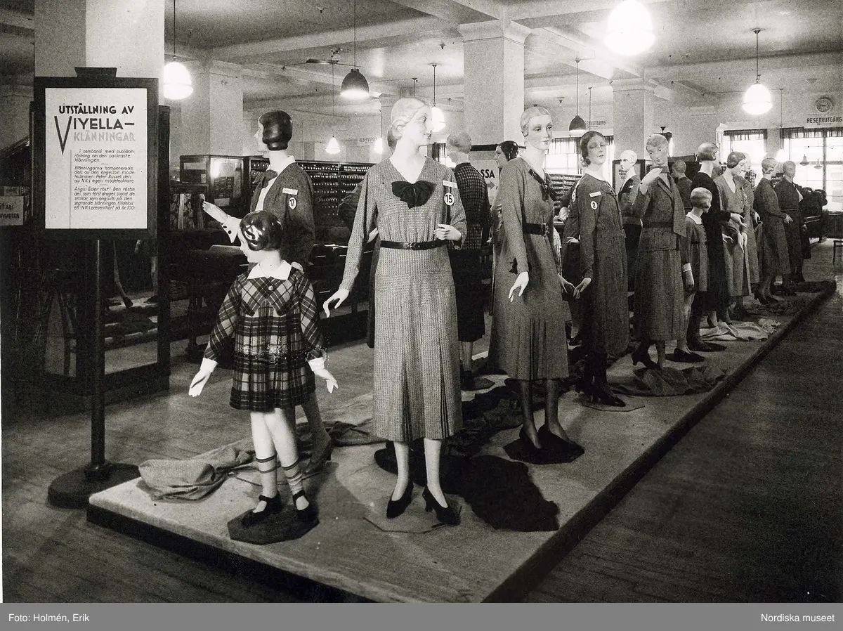 Viyella-tävling, Nordiska Kompaniet. Publikomröstning om den vackraste klänningen. Utställning med Viyella-klänningar komponerade av den engelske modetecknaren Peter Russel och NK:s egen modetecknare.