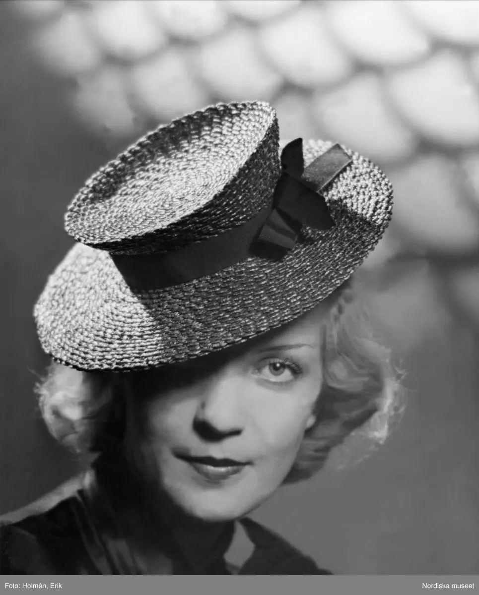 Läderbrun stråhatt. Nordiska Kompaniet.